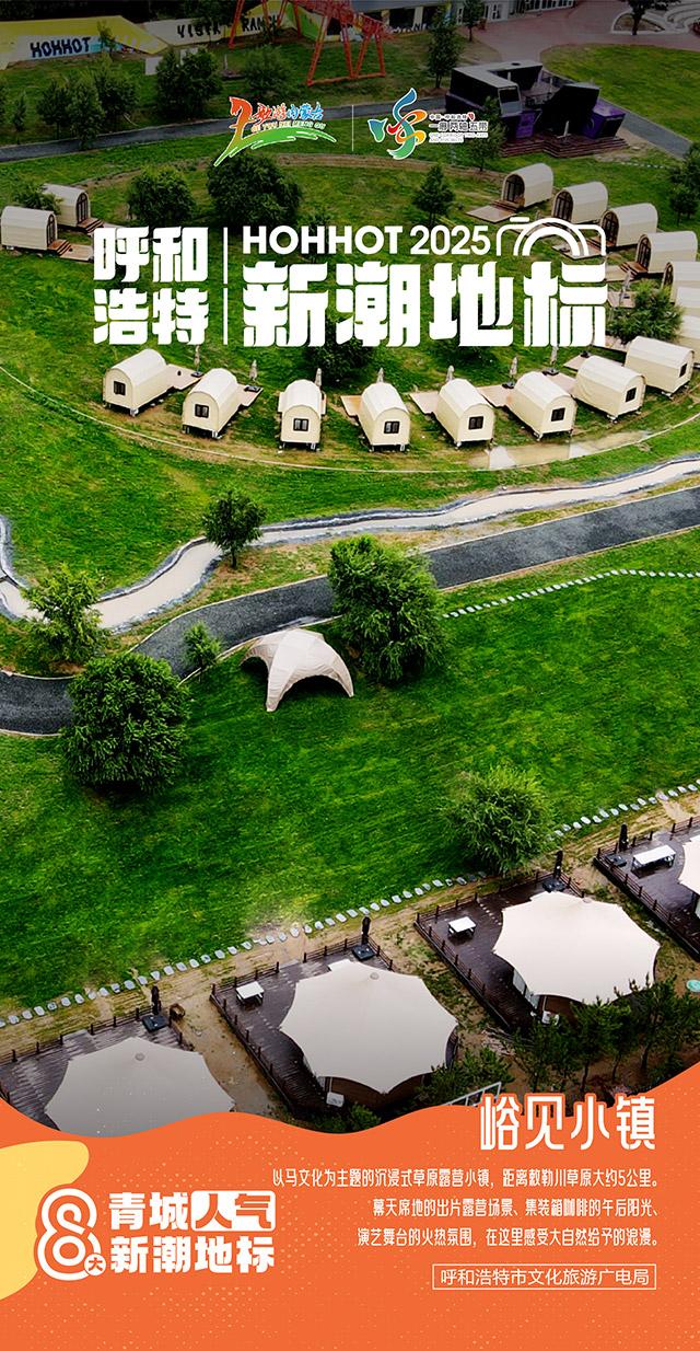 据介绍,此次入选的八大新潮地标各具特色,符合不同游客的体验需求。青城公交社以复古车厢为核心,是复古车厢与城市记忆交融的打卡圣地;敖包相会公园则是草原上的浪漫爱情地标;科技爱好者可在内蒙古航天科教研学中心开启“外太空之旅”,通过沉浸式体验感受航天魅力;喜爱户外露营的游客则能在峪见小镇找到归属,这里以马文化为主题,草原露营、集装箱咖啡等项目,让游客深度感受草原生活的乐趣。